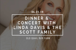 *Come an hour early at 6:30 pm and enjoy specialty appetizers, complimentary cocktails and photo opportunities with Linda Davis in the Old Quail Run Farm barn! Only 30 tickets available to this private cocktail experience. $175 a ticket (plus tax).